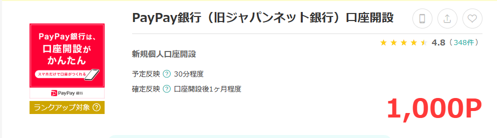 ポイントサイトを経由してPayPay銀行デビットカードの申込をする事で1,000円をゲットできます。