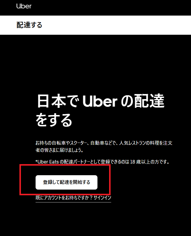 Uber Eatsの配達を行う為にはUber Driverのアカウント登録が必要になります。