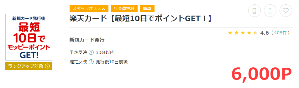 ポイントサイトを経由して楽天カードの申込をする事で6,000円+楽天ポイント5000ポイントをゲットできますので実質11,000円相当もらえます。