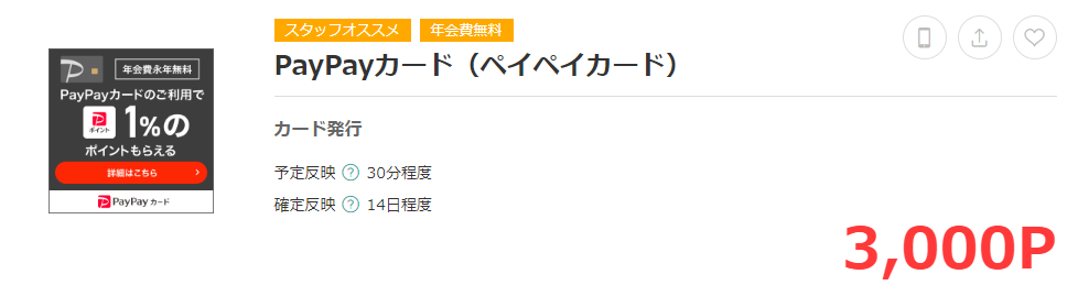 ポイントサイトを経由してPayPayカードの申込をする事で3,000円をゲットできます。